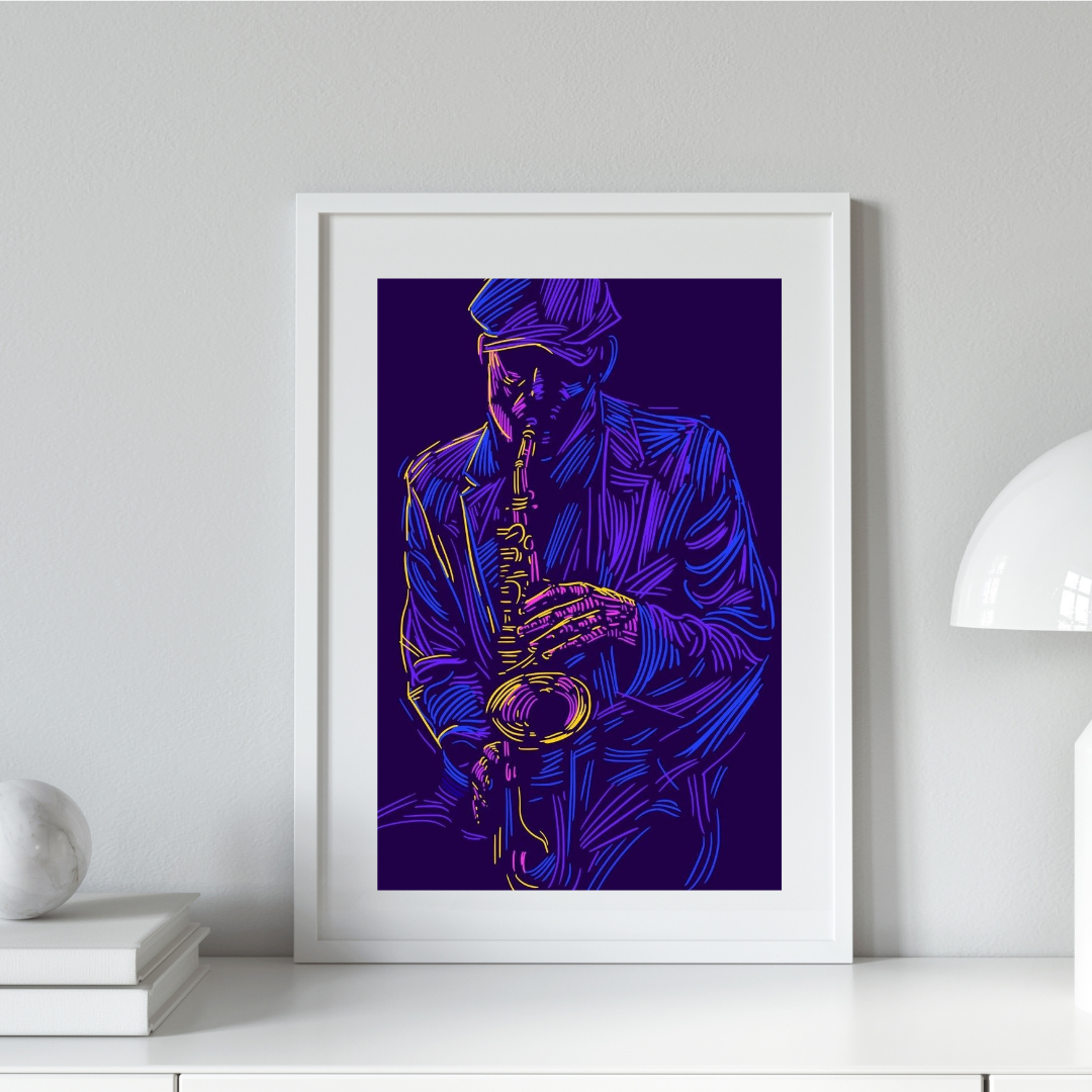 Depicting a musician playing the saxophone, this piece brings to life the passion and movement of music.